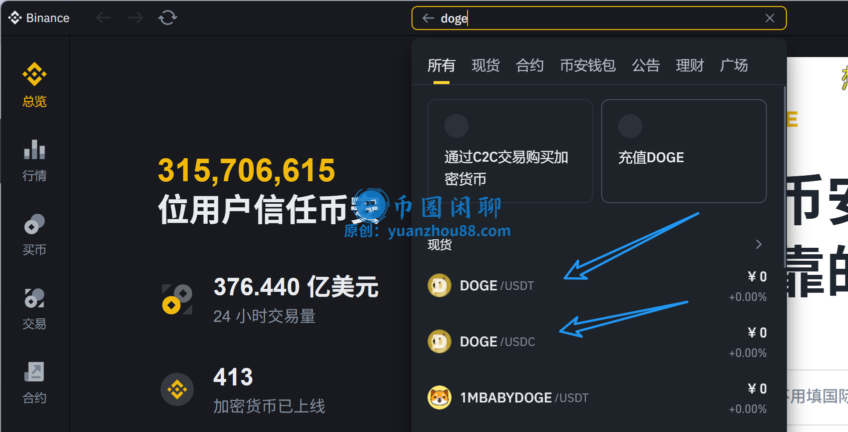 资金到账之后,在交易所的交易页面搜索你想买的币,比如“DOGE”、“SHIB”、“PEPE”,找到对应的交易对(通常是币种名称/USDT)。