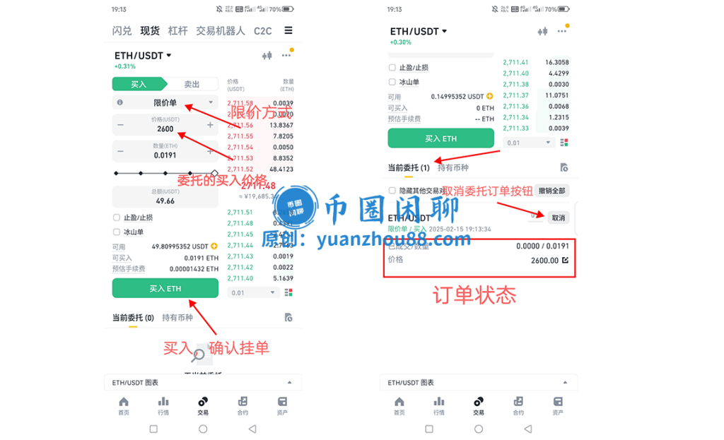 进入现货交易页面后,你可以在顶部的搜索框中输入希望交易的币种并加上“/USDT”来查找对应交易对,以下是常见的交易方式:
