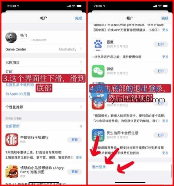 切换App Store账号:打开App Store,点击右上角的头像,滑至页面最底部,点击“退出登录”,然后登录我们购买好的Apple ID。