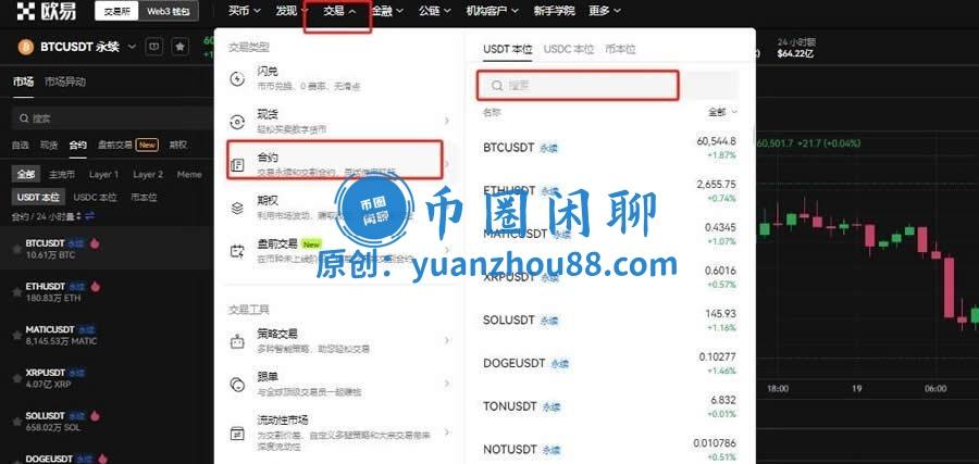 1、在欧易平台选择交易功能,点击合约选项,然后选择币种,例如 BTC。