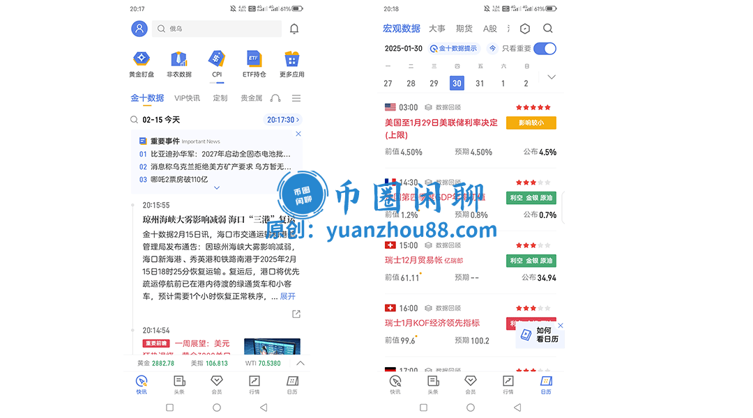 该平台特色栏目丰富多样,其中“数据快讯”以简洁方式推送关键金融数据和市场行情;“金十早知道”帮助用户梳理每日重点资讯,节省筛选时间;“图解天下”通过直观图表清晰展现复杂的金融数据和市场趋势,便于理解;这些栏目涵盖多种宏观数据,如日历信息、美联储鲍威尔讲话、美国非农数据和加息降息列表等。