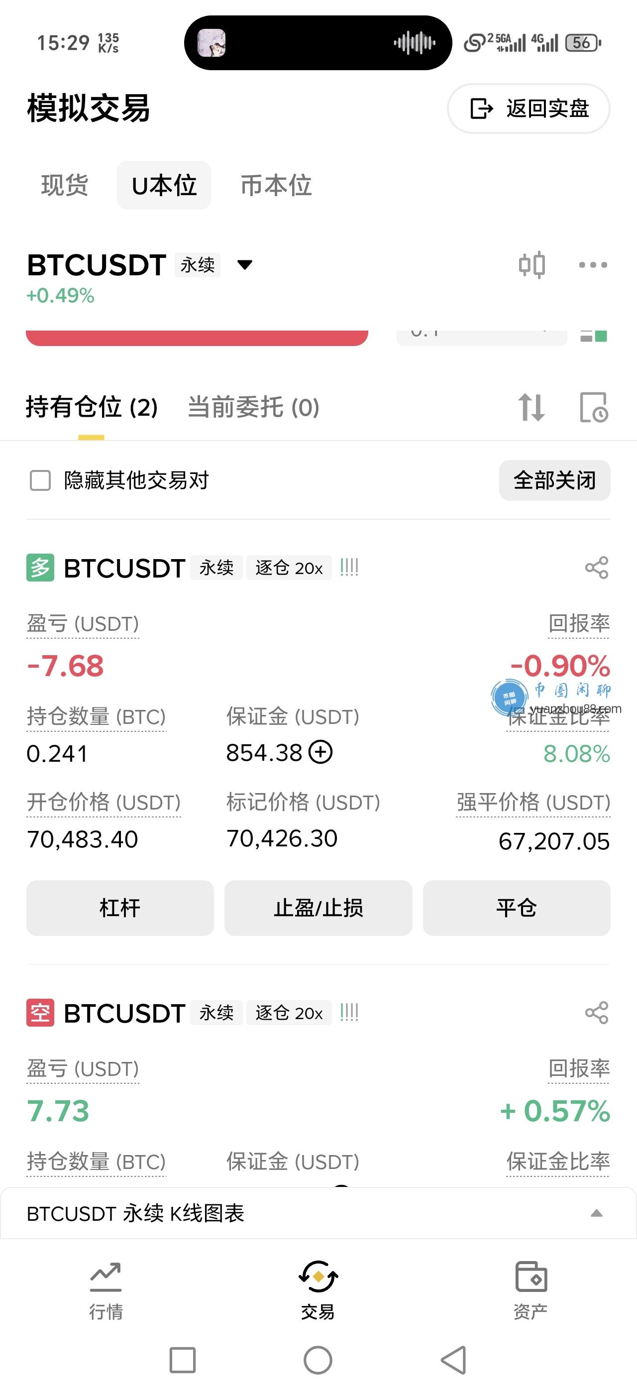 操作:在价格相对稳定的区间内,建立多空双仓。由于仓位相互对冲,爆仓风险极低。