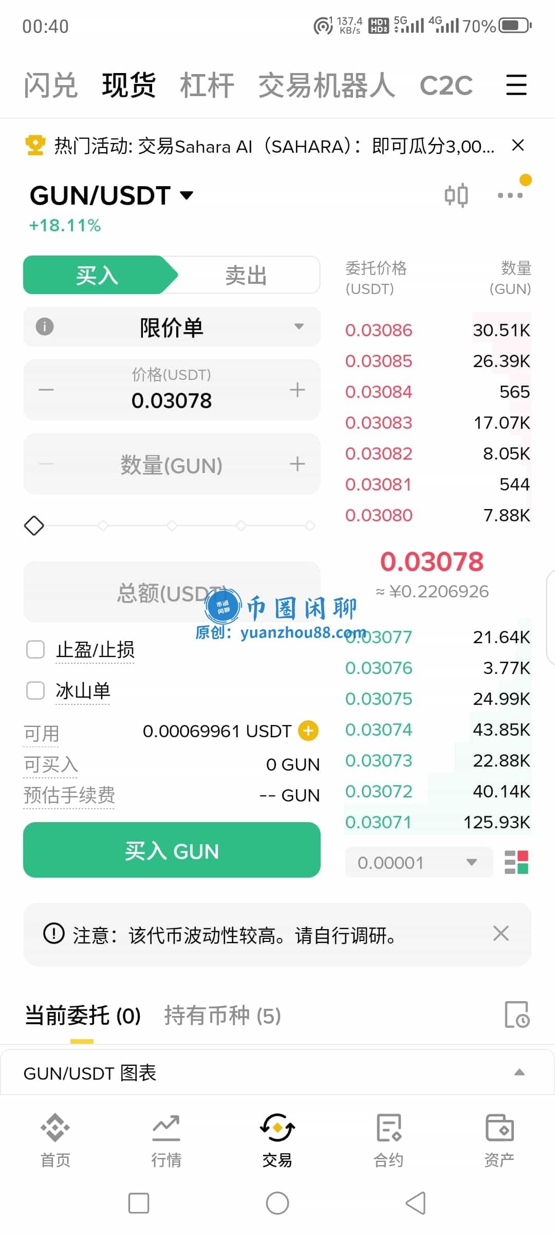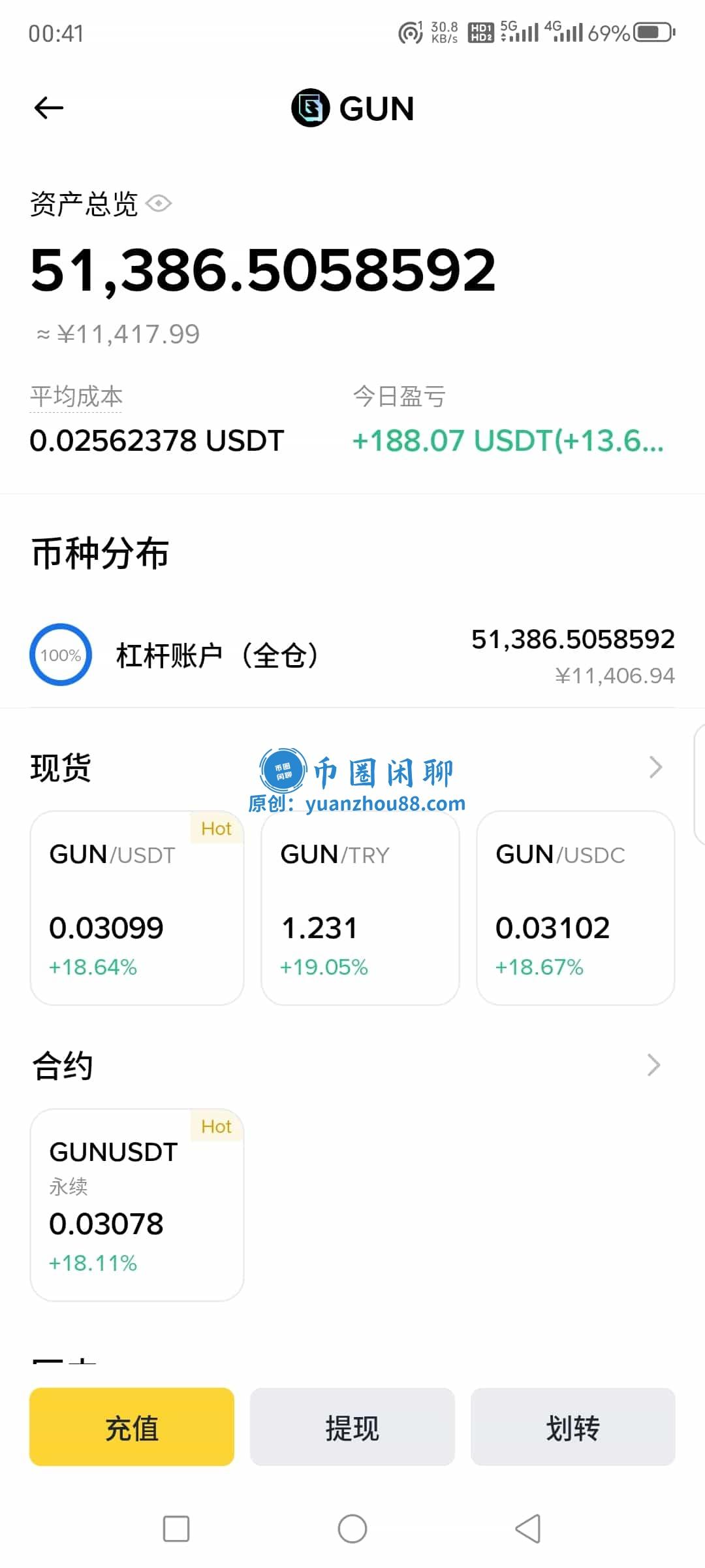 只要订单成交后,就能在“现货账户”看到我们所购买的GUN代币。