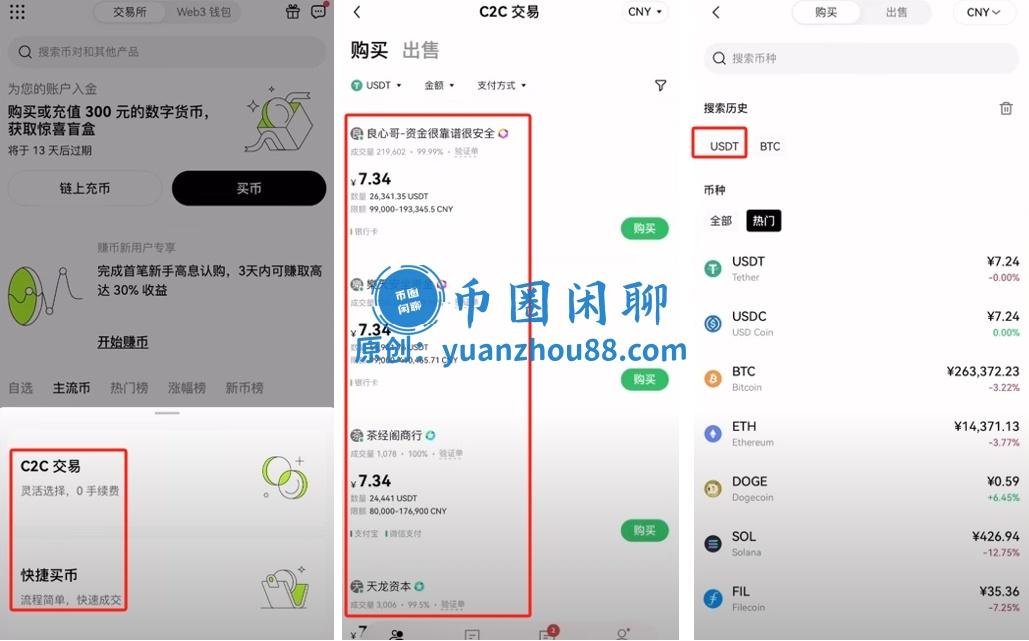 通过欧易平台的快捷买币或C2C买币功能,系统将为您自动匹配相应的交易商家。