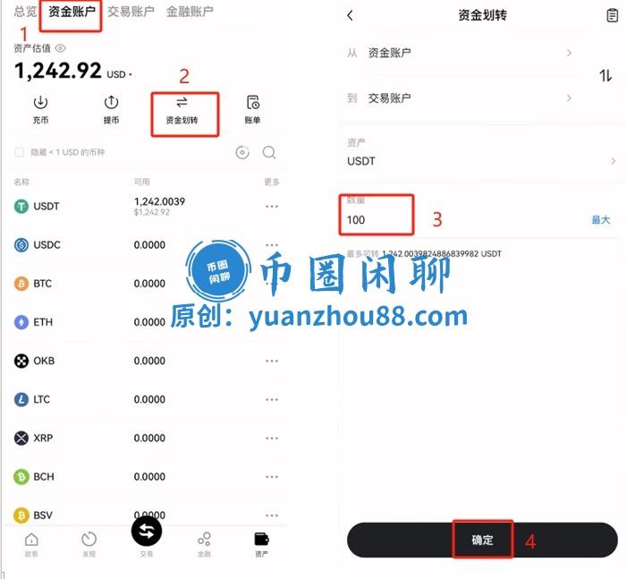 购买USDT后,资金账户将持有USDT;如需购买比特币,我们需要将资金账户中的USDT转移至交易账户,只需点击【资金划转】即可完成操作。