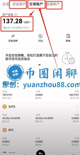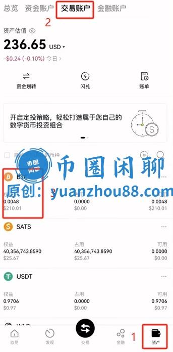 要查看我们购买的比特币,只需点击右下角的【资产】,然后在页面上方选择交易账户即可。