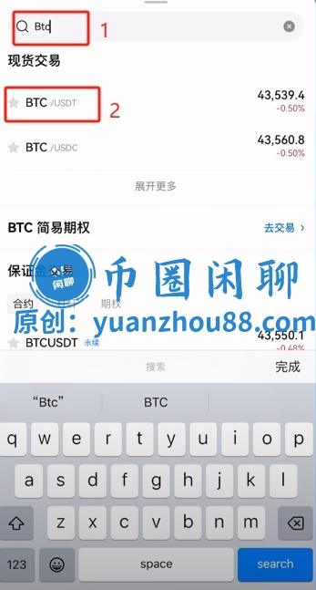 接下来,只需在搜索框中输入该资产的代号即可进行搜索。例如,若希望购买比特币,可输入“BTC”,随后下方将弹出两个选项:“USDT”和“USDC”,分别代表以USDT或USDC作为计价货币。此处我们以USDT为例,点击“BTC/USDT”即可进入相应交易页面。