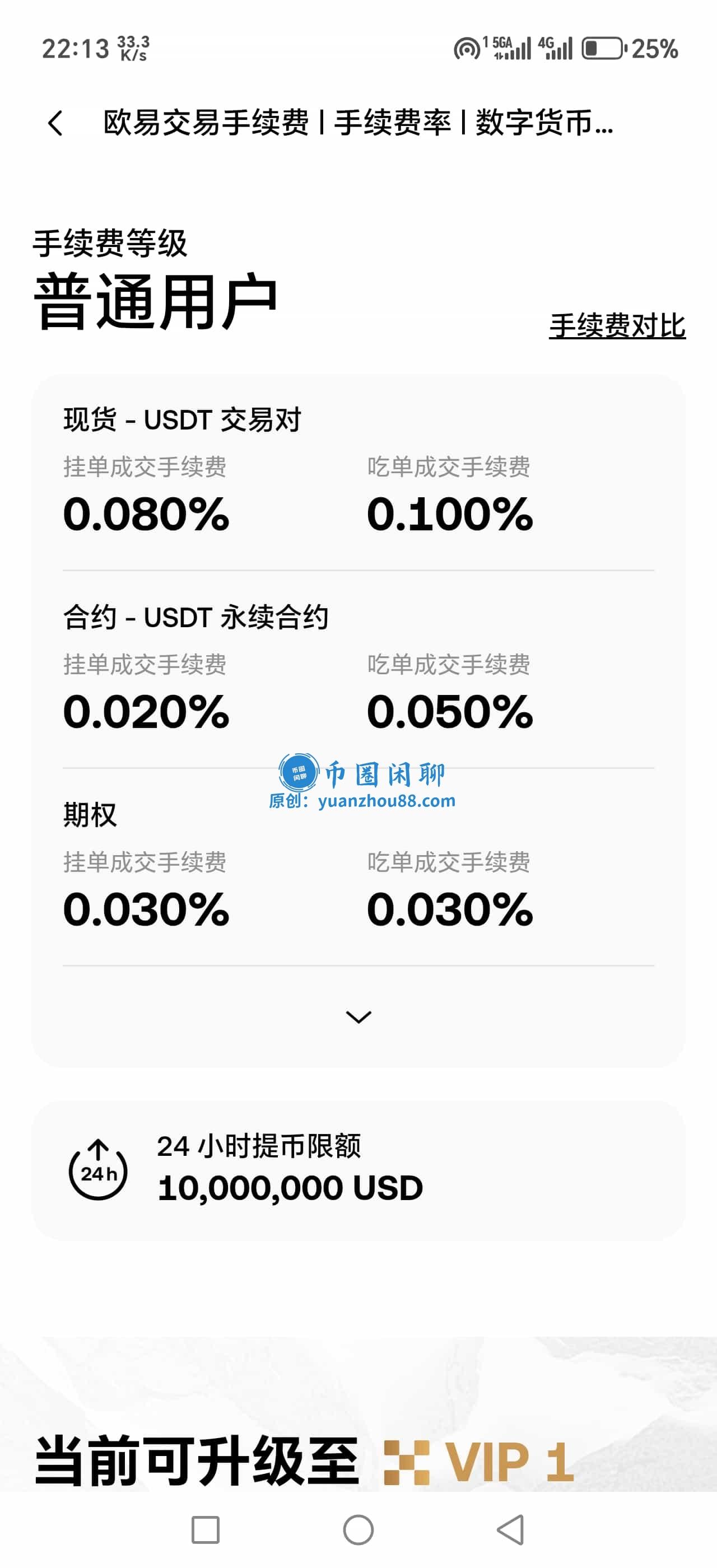 手续费因交易所和支付方式而异,以欧易与币安LV.1为例,其现货费率均为挂单成交0.080%、吃单成交(市价)0.100%。