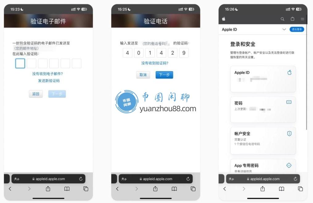 完成信息填写后,需验证电子邮箱和手机号码。苹果官网将向邮箱发送一个六位验证码(有效期3小时),请前往收件箱查看并填入验证框。