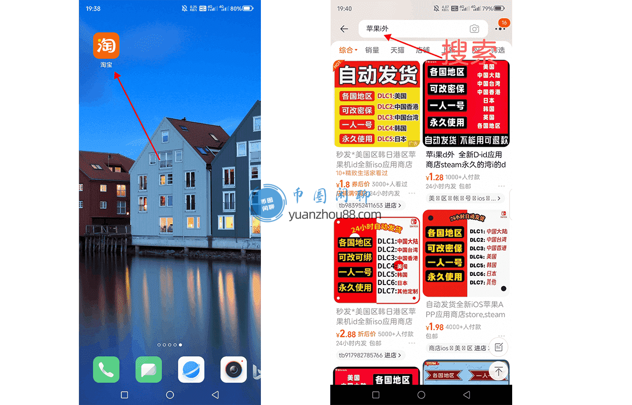 1. 在手机上打开淘宝购物软件或使用咸鱼也可以,在首页的搜索框里输入苹果外、苹i果d、苹果i外等此类关键; 搜索结果后,选择商家进入购买。