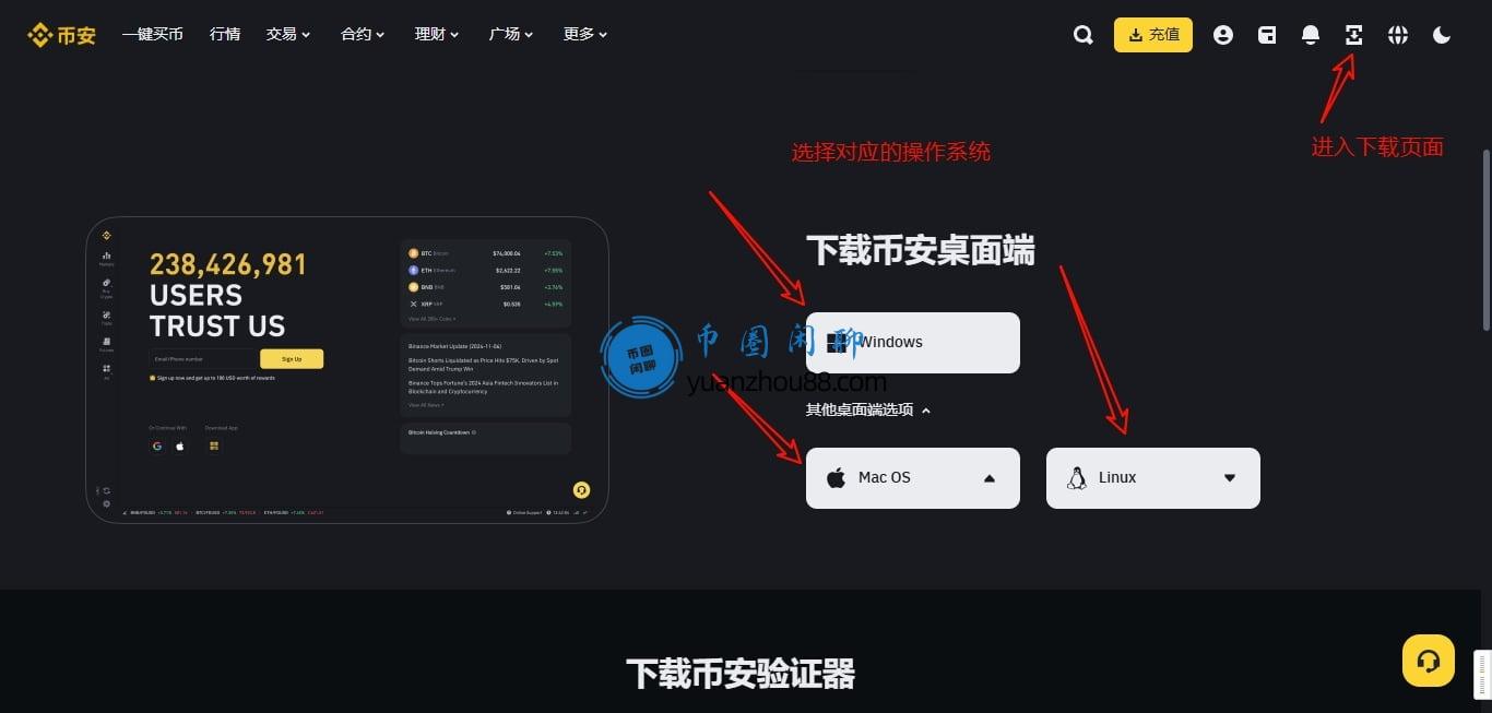在币安的下载页面中,您将看到面向不同平台的下载选项;请选择适用于Mac OS的桌面客户端,并点击对应的“Download”按钮进行下载Mac版本,系统将自动获取币安Mac桌面应用的安装包。