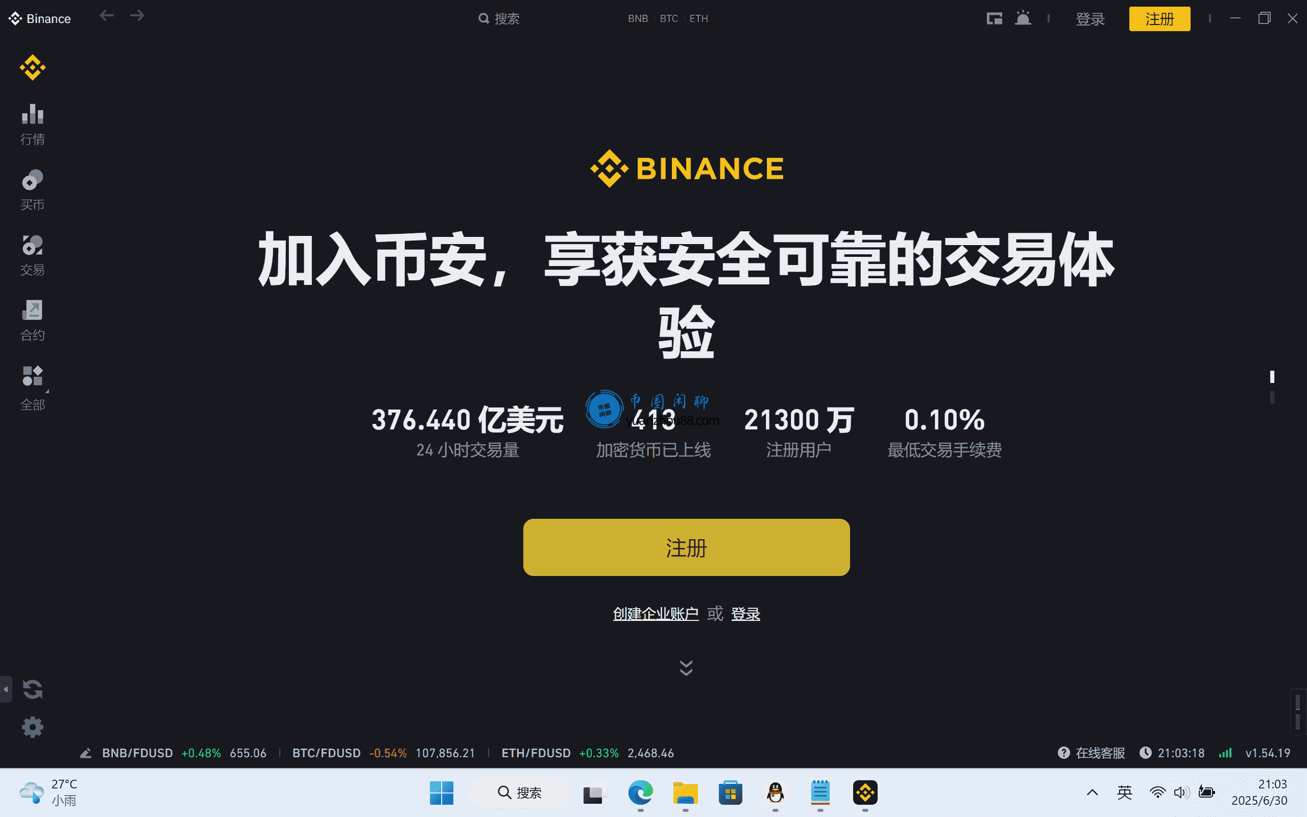 币安 币安Binance| 支持丰富的币种与教学资源 注册