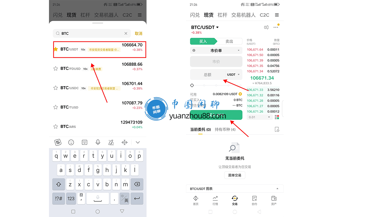 币安 APP 提供丰富的交易功能,新手建议先熟悉: