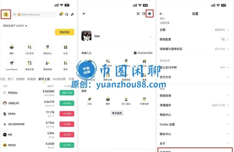 第一步:更新币安APP至最新版本。在APP首页左上角的设置中检查更新,苹果用户如无法检查更新,可到App Store中查找币安自行更新。确保版本不低于2.92版本。