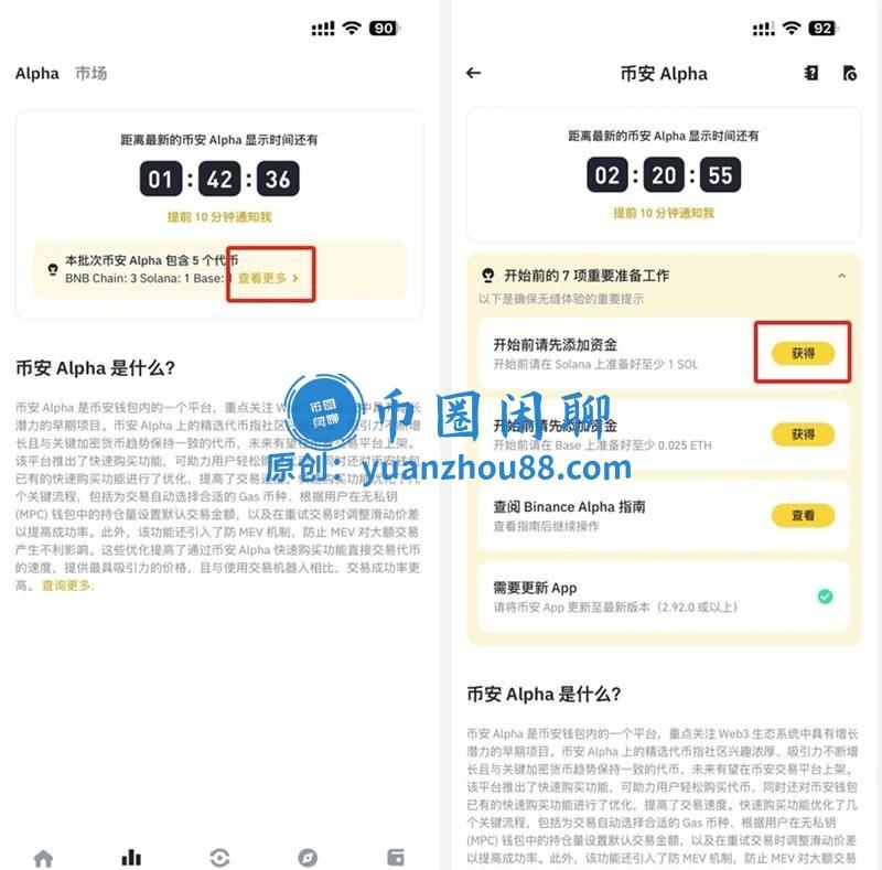 第二步:关注倒计时。在币安Alpha页面,会显示距离下次代币上线的倒计时。首次参与时,平台会贴心地显示准备提示。