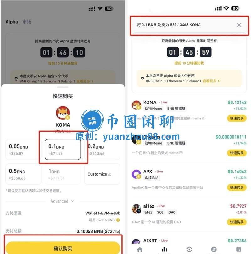 在币安Alpha平台中,用户可以通过 币安Web3钱包 快速参与代币购买。每个上线的代币会有一个特定的上线时间窗口,并通过 Quick Buy(快速购买)功能,使交易更加顺利和高效。