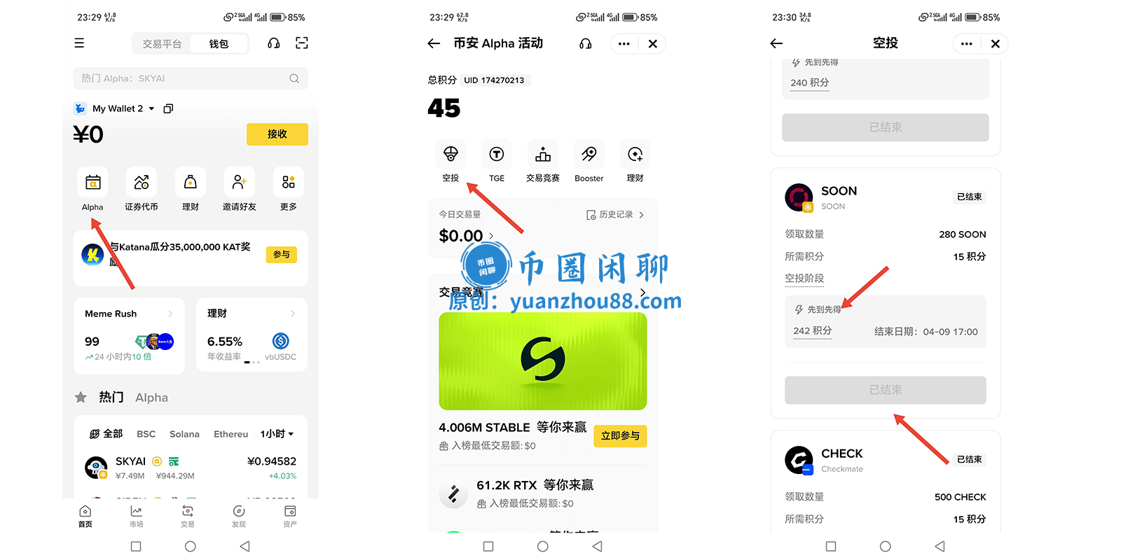 当你积累到足够的Alpha积分后,就可以参与Alpha空投活动了。