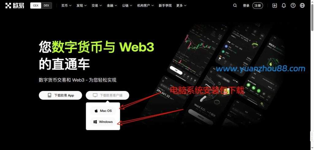 用电脑的浏览器访问欧易官网,如果你访问不了欧易的国际站,可在本文中的顶部通过注册页面进入。并将网页滚动到顶部导航栏,找到并点击“下载”按钮。