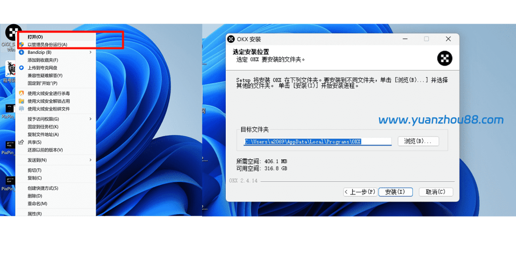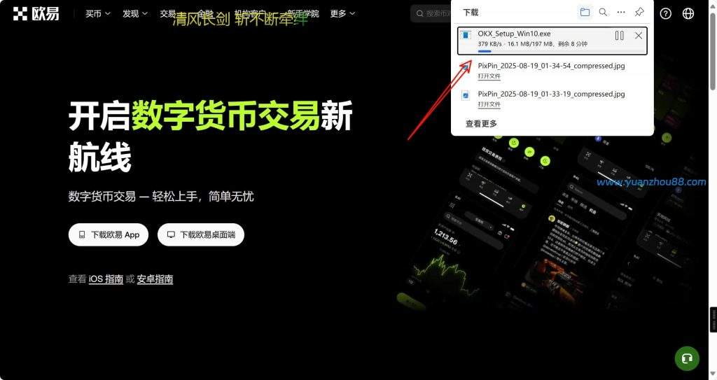 我这里演示的是win 11系统下载文件是一个.exe安装程序(如okx.exe),请将其保存到您熟悉的位置,如电脑桌面上。