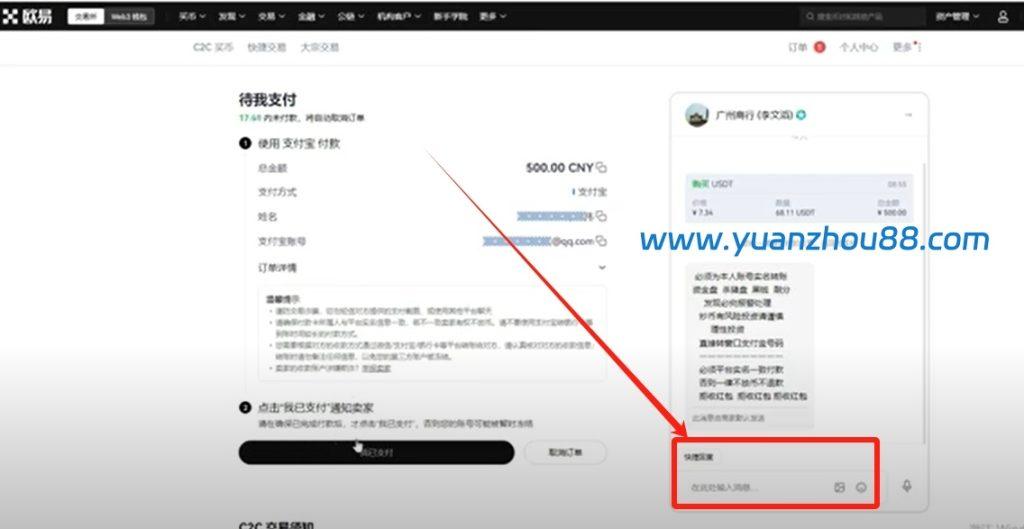 如果等一会商家还没放币,我们可以在消息栏催一催,告诉他我已支付,请你放币。
