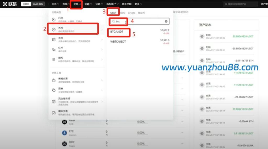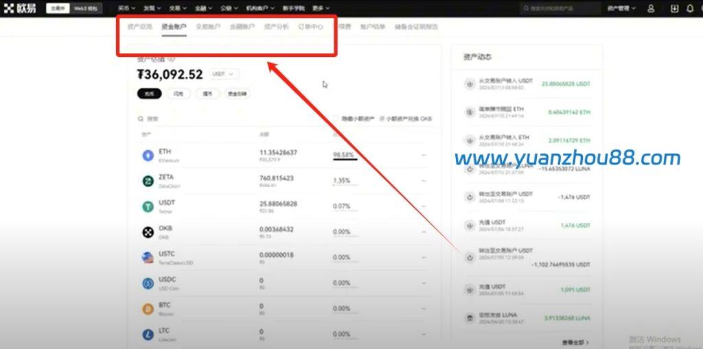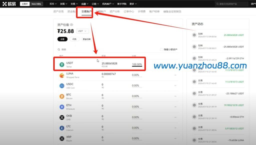 完成USDT购买后,点击左上角的”欧易”标识返回主页,然后点击右上角的【资产管理】,选择【我的资产】选项。