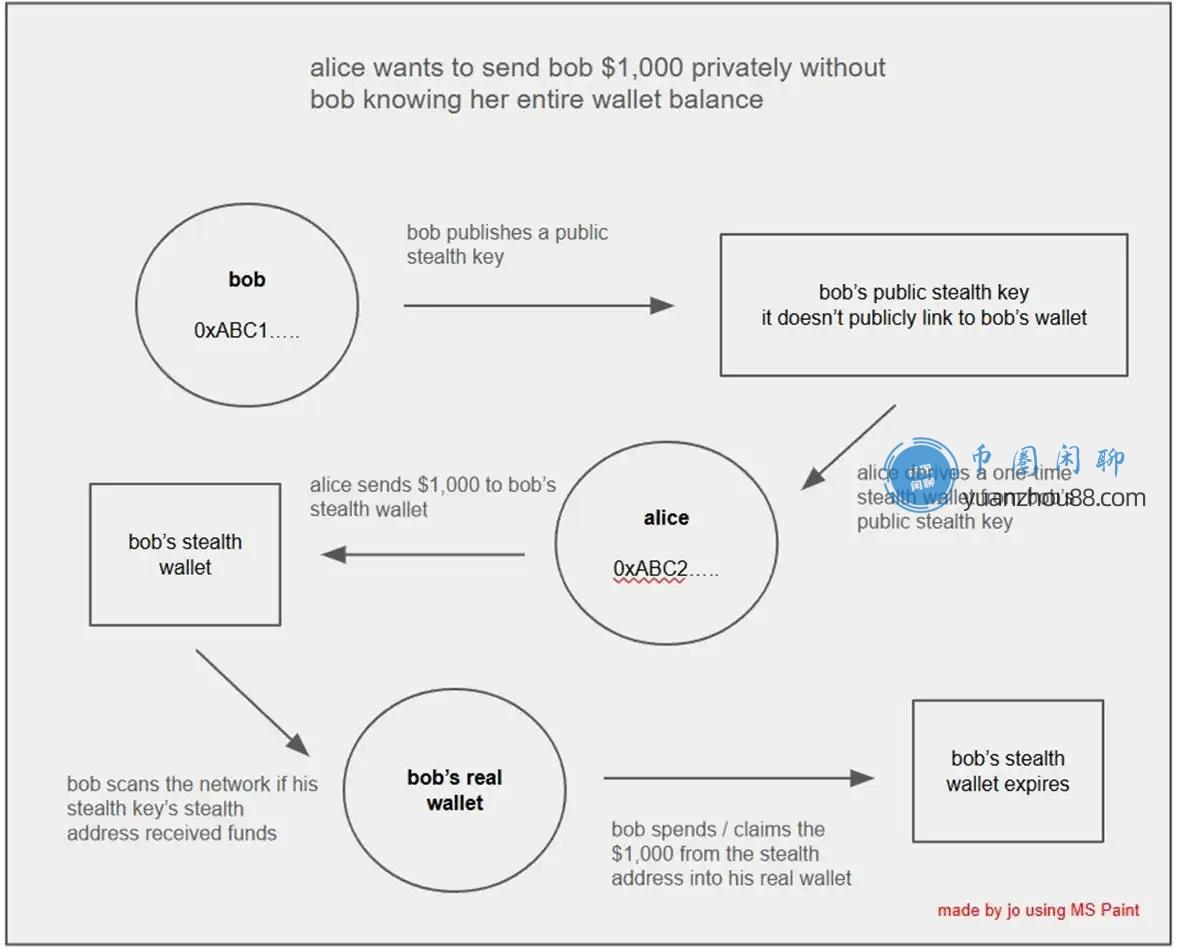 - 隐身地址:为每笔交易生成一次性地址,使得外界无法将这些收款归结到同一个接收者主钱包。